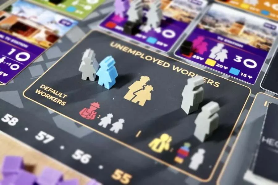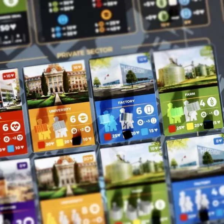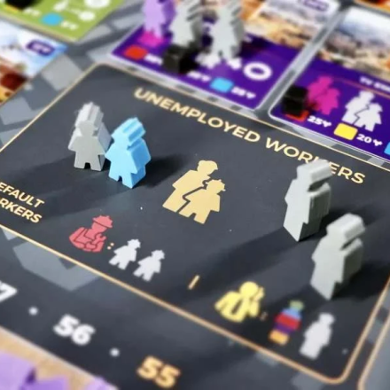 - В фазе производства в обратном порядке игроки, владеющие компаниями, производят ресурсы, а также удовлетворяются потребности населения, проходит проверка государственных займов и уплата налогов в государственную казну.