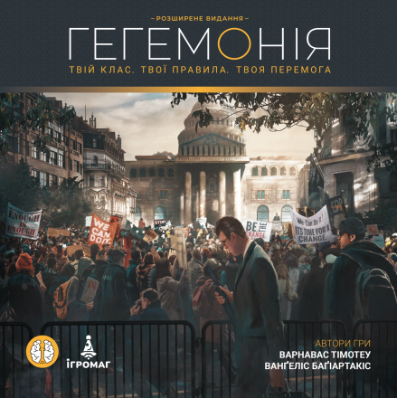 «Гегемония» — необычная настольная игра, которая несет в себе не только оригинальный игровой опыт, но и образовательную ценность. Коробка также содержит большое дополнение «Кризис и контроль», что включает в себя правила автомы для соло-игры или «дополнительного игрока» в стандартной игре за каждый из первых трех классов, а также три минидополнения: