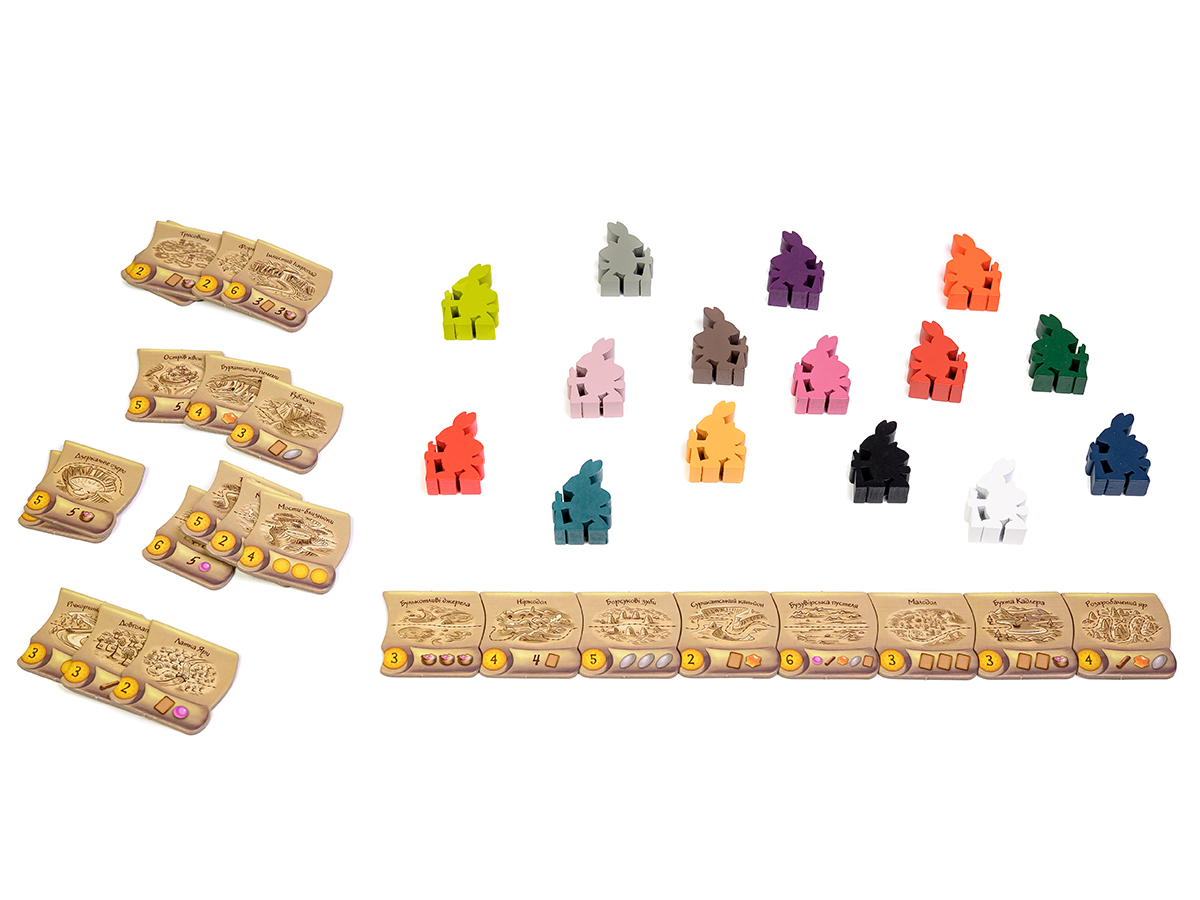 Во время своих Путешествий путешественники будут иметь возможность встретить действительно величественных существ и подружиться с ними. В этом случае могущественные союзники отправятся прямо в Эверделл, чтобы предоставить там свою помощь игрокам. Каждый такой великан обладает уникальными способностями, которые делают его чрезвычайно полезным помощником. Например: Король Рун будет приносить игроку дополнительные ресурсы, Тишик будет игнорировать ограничение местностей в 1 фишку, а Мидолап будет дарить немного ягод.Также дополнение Everdell: Spirecrest добавляет в игру новый вариант соло-режима. На этот раз Король-крыса, уже хорошо знакомый игрокам по базовой игре, решил помешать исследовать мир вокруг Эверделла и найти себе новых союзников. Он договорился с неким Великим Созданием, чьей целью теперь будет преследование и дальнейшее обворовывание бедных Кроликов-путешественников, у которых и без этого всяких проблем хватает.