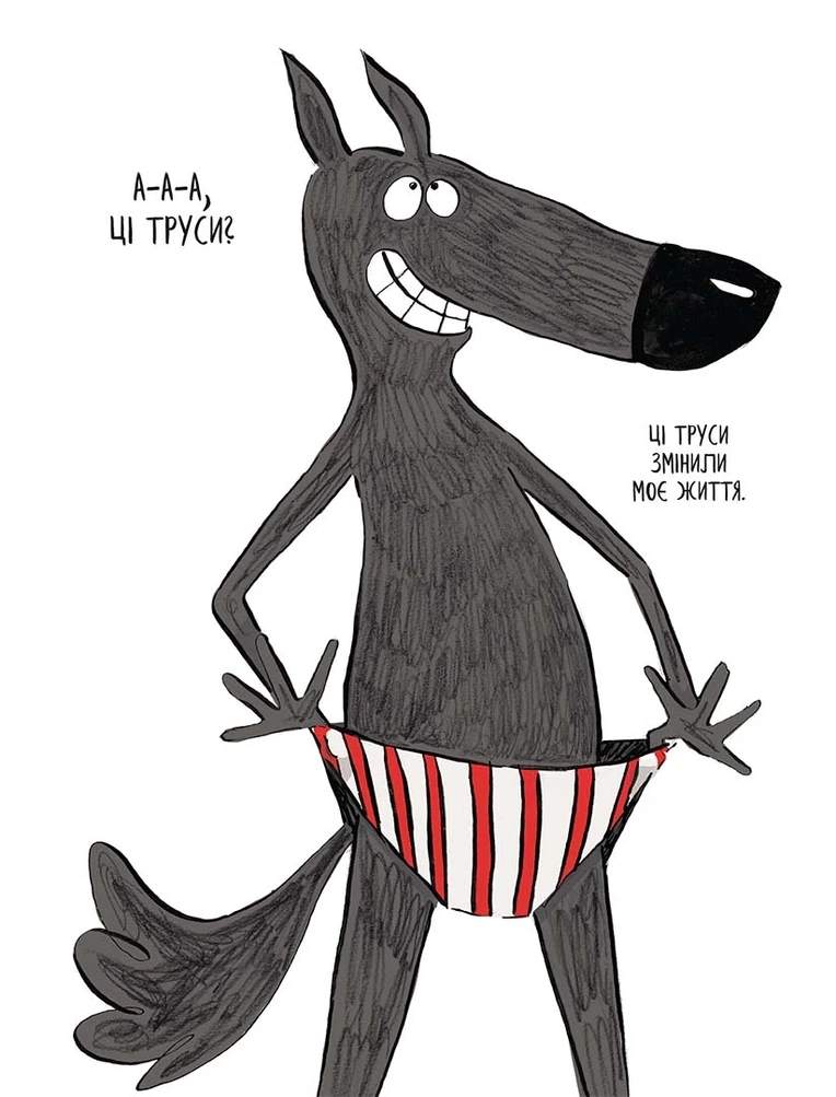 Но когда однажды Волк спустился со своей скалы, одетый в милые плетеные трусы, его сначала не узнали. Где злющие очиски? Нет, только хороший взгляд. Где огромные зубы… А нет, они на месте. Неужели все это время звери обвиняли не того? Неужели все это время они кричали: «Волк!», хоть действительно бояться надо было кого-то другого?