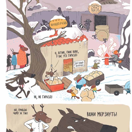 Пришла зима, снежная, холодная… Звери прячутся в дупла и норы, где тепло и есть запасы продовольствия. А волк в трусах, кажется, снова превращается в злую волчицу. Но почему, разве его дупца мерзнет в таком теплом белье?