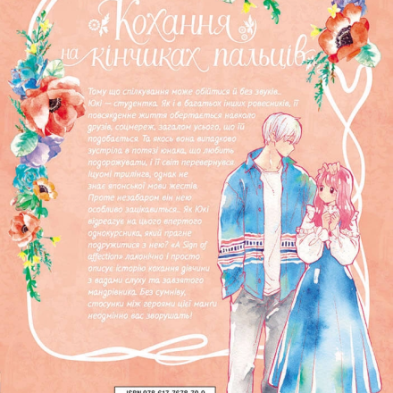 Однако вскоре он ею особенно заинтересуется… Как Юки отреагирует на этого упрямого однокурсника, стремящегося подружиться с ней? A Sign of affection лаконично и просто описывает историю любви девушки с нарушением слуха и упорного путешественника. Без сомнения, отношения между героями этой манги непременно вас тронут!