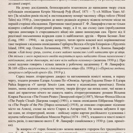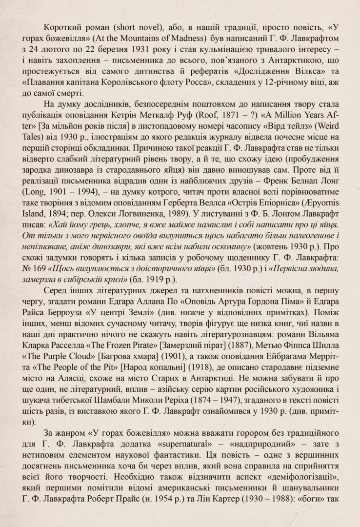 Примечания переводчика Богдана Стасюка к переводу произведения Г.Ф. Лавкрафт «В горах безумия» от издательства Varvar Publishing иллюстрированного Франсуа Баранже.