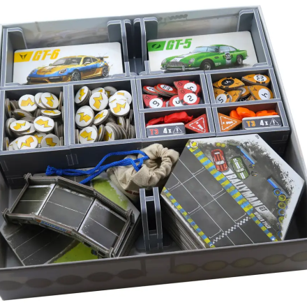 Органайзер для гри Rallyman: GT дозволить зберігати всі компоненти в повному порядку і позбавить від непотрібної витрати часу по розбору і сортуванню ігрових елементів.