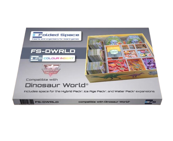 Даний органайзер сумісний з базовою грою Dinosaur World, включно з доповненнями Hybrid Pack®, Ice Age Pack® та Water Pack®. Призначений для гри з зовнішним розміром коробки 29.5 x 29.5 x 9.0 см.