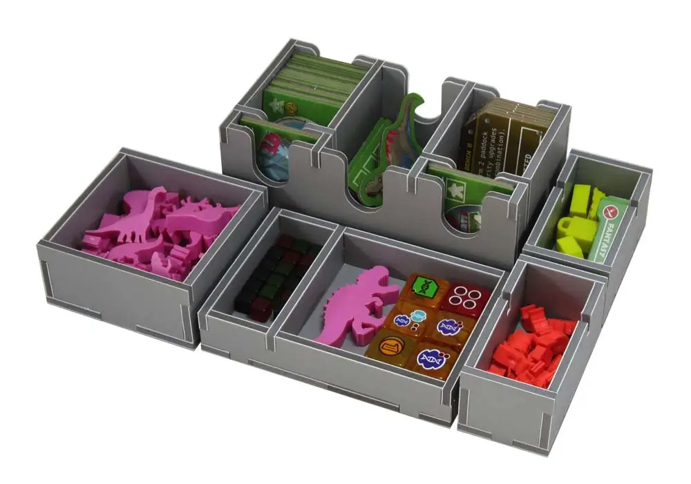 Органайзер для гри Dinosaur Island дозволить зберігати всі компоненти в повному порядку і позбавить від непотрібної витрати часу по розбору і сортуванню ігрових елементів.