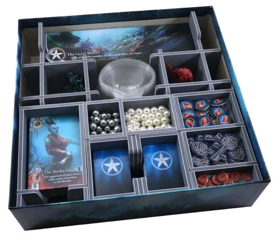 Даний органайзер сумісний з базовою грою Abyss®, та доповненнями Leviathan® and Kraken®. Призначений для гри з зовнішним розміром коробки 28.6 x 28.6 x 8.0 см.