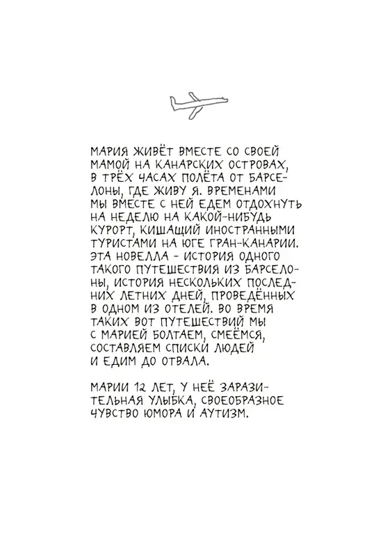 «Марія і я» — це автобіографічна мальована історія про канікули дванадцятирічної дівчинки Марії та її батька. У ній відтворено побутові випадки, з якими стикаються сотні сімей з дитиною-аутистом. Але насправді це ціла пригода, де доводиться долати труднощі через те, що світ навколо нас погано пристосований для таких, як Марія, і далеко не всі, кого вона зустрічає на своєму шляху, готові зрозуміти її.