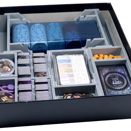 Дозволить зберігати всі компоненти в повному порядку і позбавить від непотрібної витрати часу по розбору і сортуванню ігрових елементів. Призначений для стандартної версії гри Retail із зовнішніми розмірами коробки 30.0 x 30.0 x 5.5 см і для версії гри Deluxe з розмірами 30.0 x 30.0 x 7.5 см.