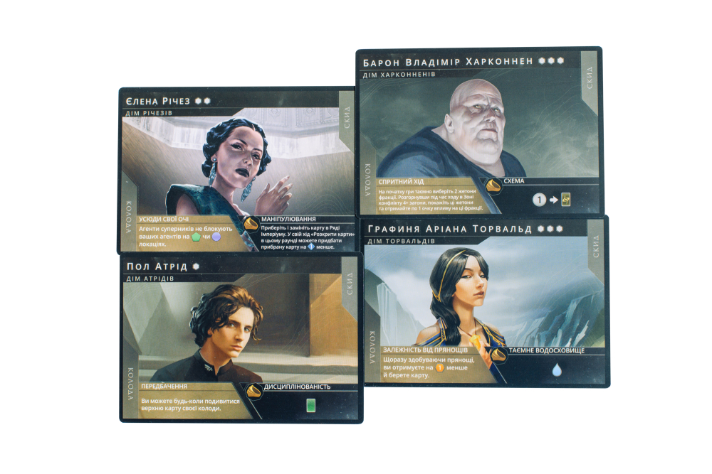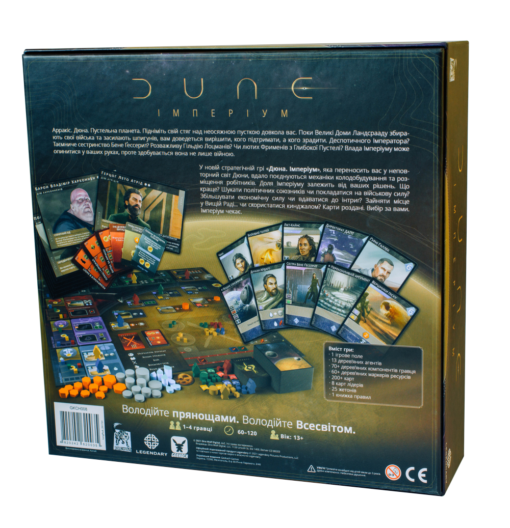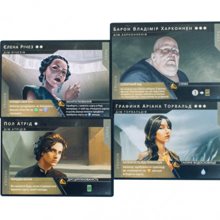 «Дюна: Імперіум» – стратегія, у якій продумування ходів змінюється імпровізацією через дії суперників, війна не тільки на полі битви, а й за прихильність великих фракцій. У кожен свій хід ви маєте великий вибір доступних дій, кожна з котрих принесе користь, тому кожна партія буде унікальна. Великий вибір карт для своєї колоди, які можуть виконувати різні функції, приносять стратегічну різноманітність, а різні, хоча й збалансовані між собою, лідери домів дозволяють підсилювати свої стратегії.