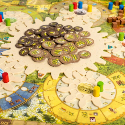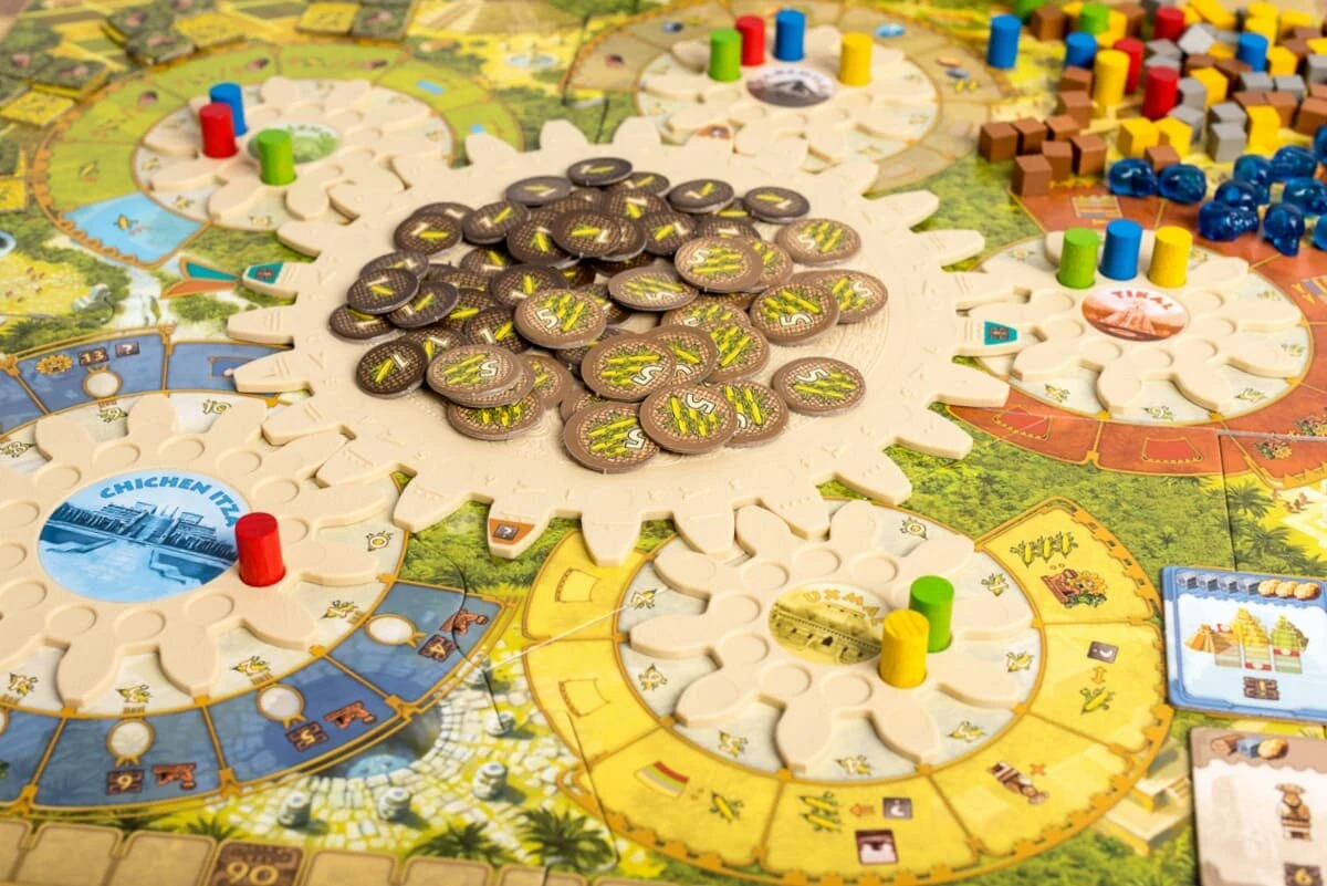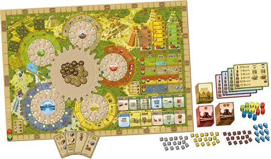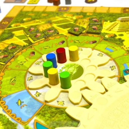 Центральна шестерня Цолькін з 26 зубцями кожен раунд повертає п'ять інших шестерень, що являє собою знамениті міста мая - Паленке, Уксмал, Тікаль, Яшчилан, Чичен-Іца. У такий спосіб відкриваються нові локації, куди гравці будуть відправляти своїх робітників. Розміщені робітники прокручуються разом з колесом – чим далі вони просунуться за годинниковою стрілкою, тим цікавіші бонуси отримає їх власник, коли вирішить їх забрати. Здавалося б, все просто: посади робітника на карусель – і нехай собі катається, проте постійні продовольчі кризи й гостра нестача ресурсів змушують знімати трудівників завчасно, щоб отримати хоч який-небудь дохід.