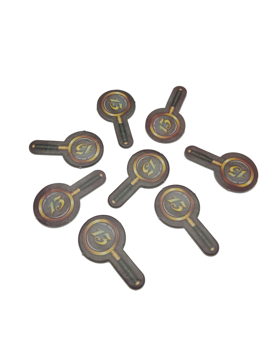 Детективи також отримують по аркушу, на якому відмічені всі «докази», тобто символи на картах.