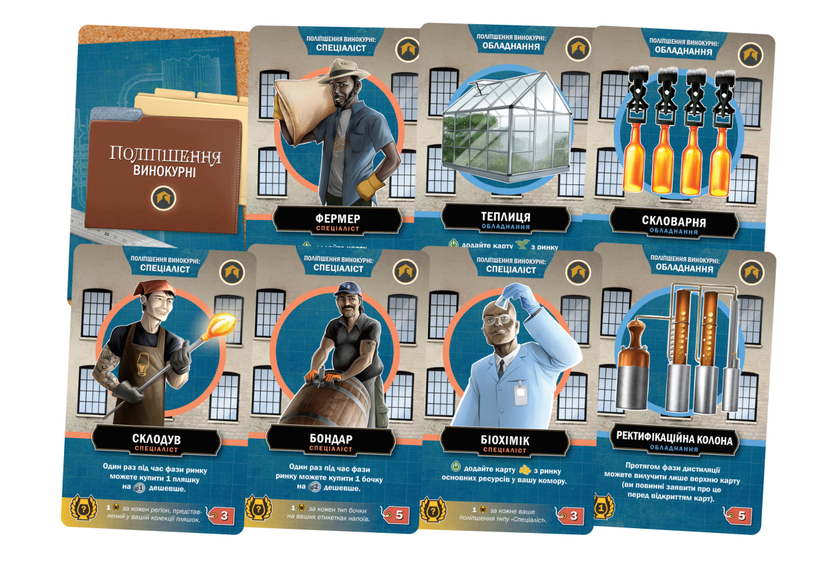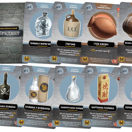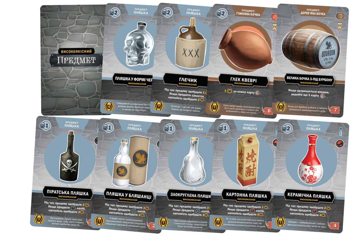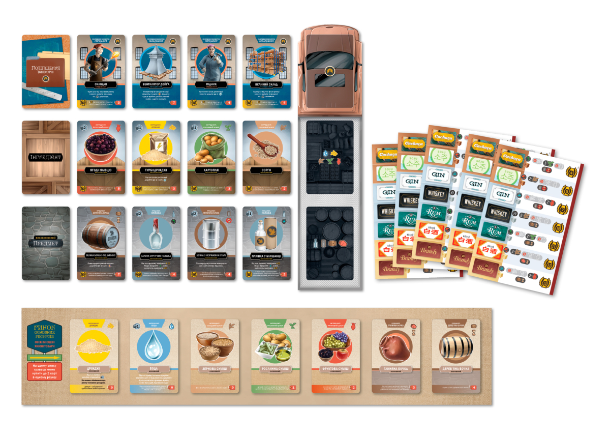 – Карту інгредієнта, предмета або поліпшення винокурні на ринку високоякісних ресурсів.