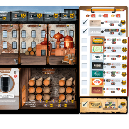 – Відкрийте решту карт у стосі. Якщо ці карти відповідають одному з доступних рецептів, а ви маєте потрібну бочку, візьміть етикетку цього напою. Карту бочки й етикетку покладіть на стос цього напою.