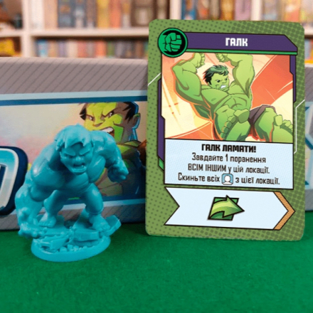 - Бере одну карту з особистої колоди на руку (або 4, якщо героя нокаутовано. Потім фігурка нокаутованого героя піднімається).