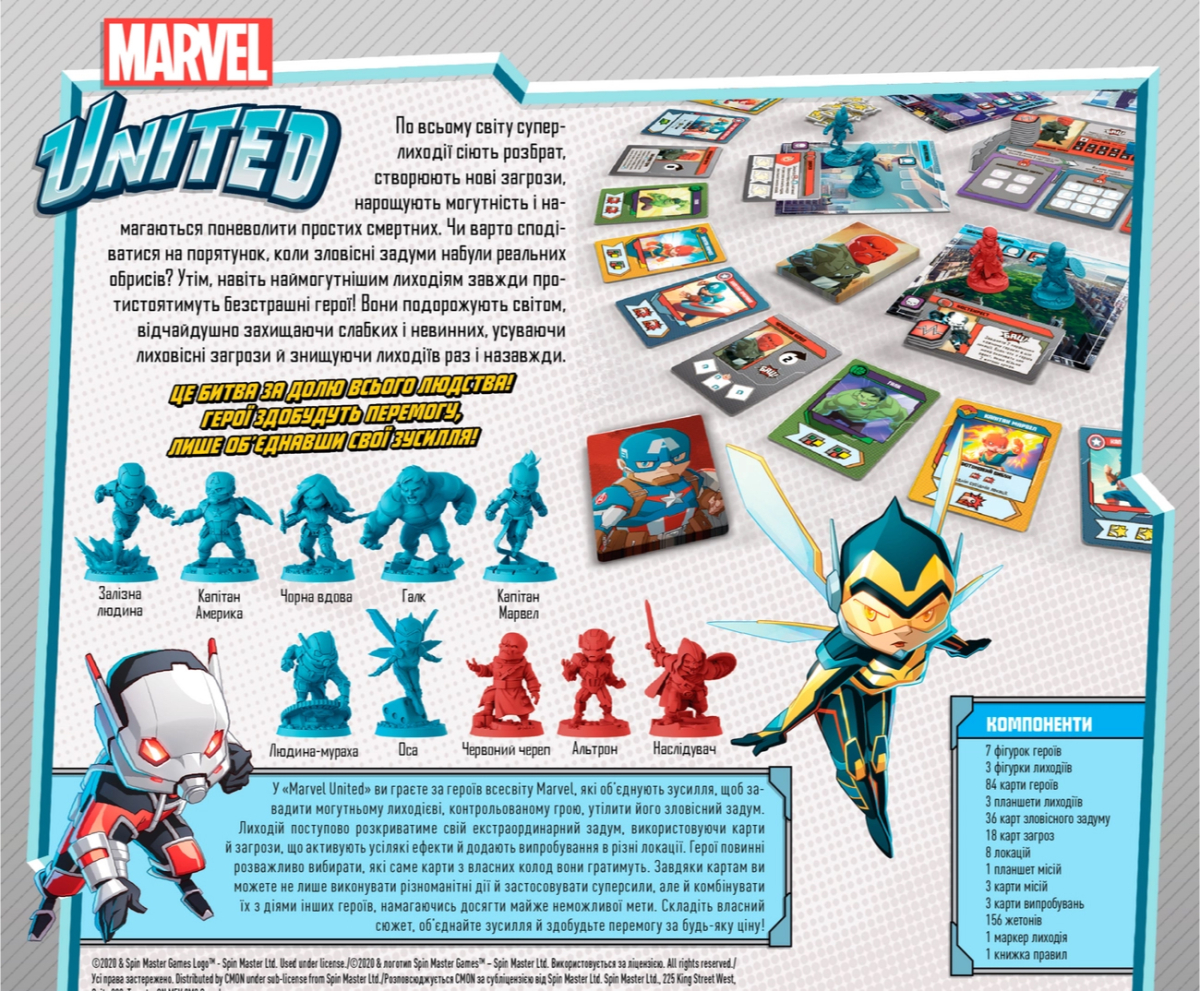 Marvel United гра. Сімейний кооператив за коміксами Марвел