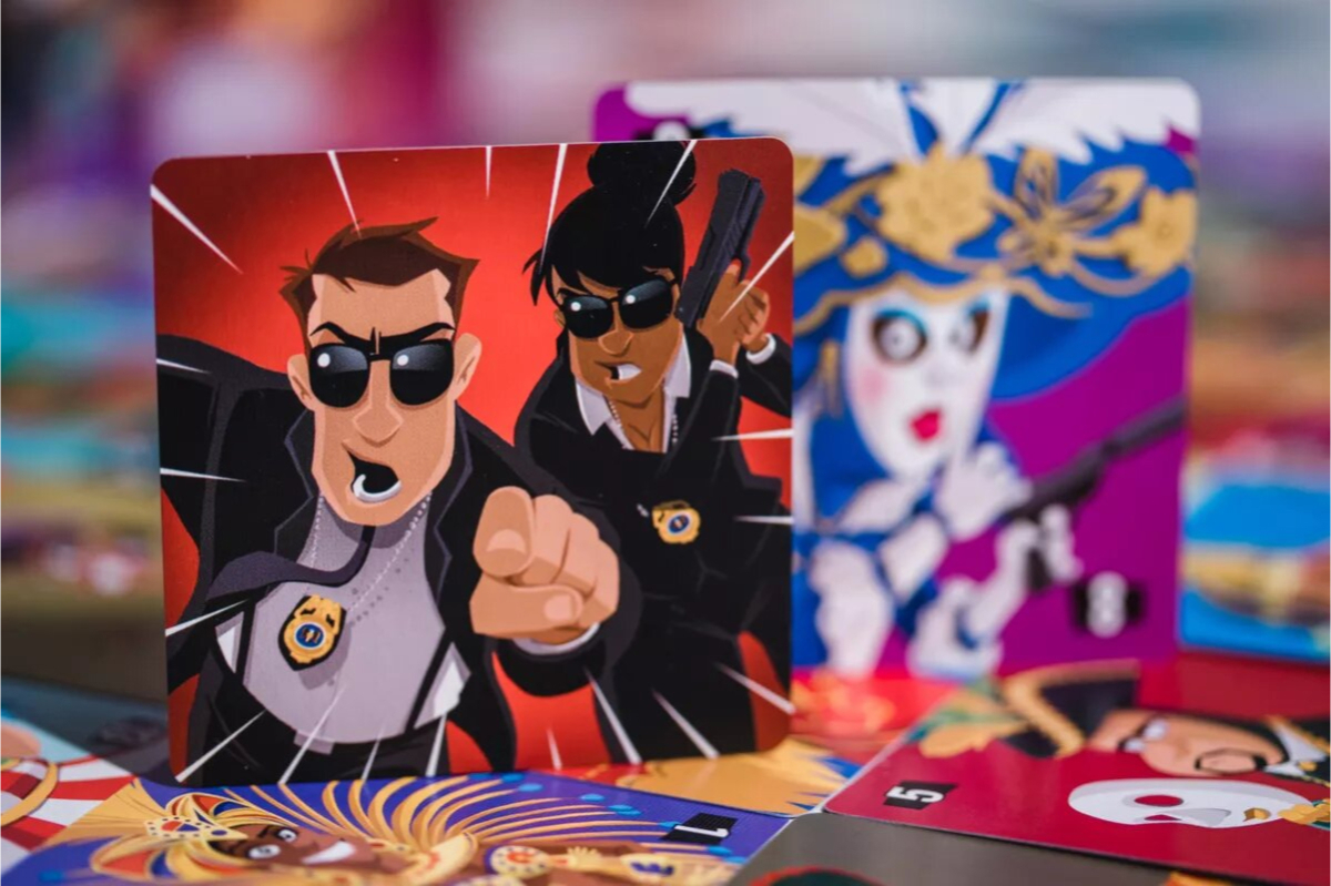 - Дві ідентичні колоди агентів являють собою натовп на маскараді, одна з колод розігрується горілиць в центрі столу, а інша розподіляється між всіма гравцями.