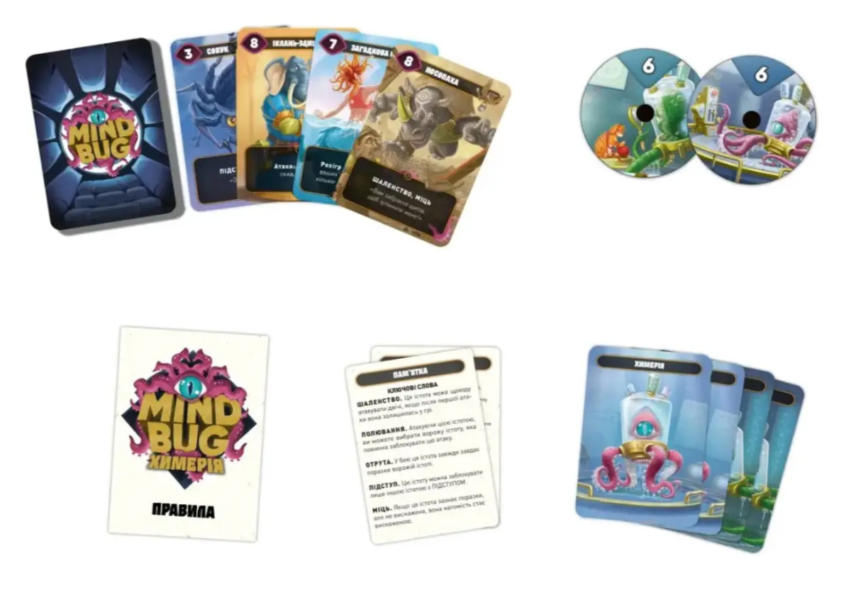 Проте у дуельній грі Mind Bug. Химерія: Перший контакт (Mindbug: First Contact) підійшли до цього питання з досить неочікуваного боку, а саме зверху! Бо саме на голову монстрів може присмоктатися ця Химерія, перехоплюючи контроль над істотою супротивника!