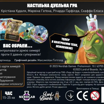Та основна фішка гри полягає у тому, що кожен гравець має під контролем дві карти, які можна використати під час розіграшу карти супротивником і перехопити контроль над істотою! (кожна істота перехоплюється однією Химерією, навіть якщо у неї кілька голів. Або зовсім нема голів. Або замість голів інші об’єкти. Або… ну у всіх випадках, ви зрозуміли механіку)