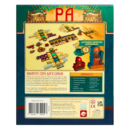 Ви станете одним із синів бога Сонця з настільною грою РА – азартною стратегією, в якій захопливим чином поєднується аукціон із сонячними лотами та колекціонуванням плиток. Тут кожен ігровий хід перетворюється на шанс зміцнити свою позицію, використовуючи для ставок власні сонця з метою придбання різноманітних плиток.