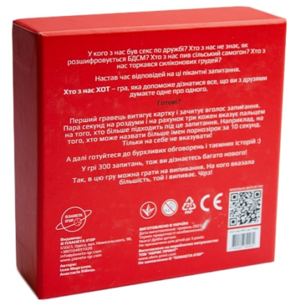 Прикольна гра для великої компанії, в якій учасники відповідають на провокаційні питання. Можна не сумніватися, що гра «Хто з нас? ХОТ» стане хітом святкової програми. Якщо ви хочете весело провести час і дізнатися багато нового про своїх друзів, Гікач наполегливо рекомендує купити цю гру.