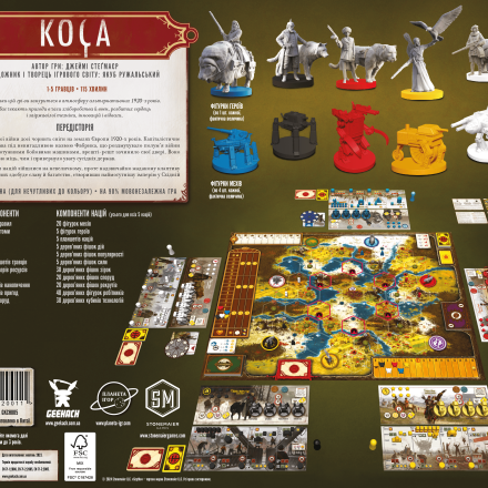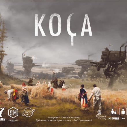 Суператмосферна гра, яка перенесе вас до альтернативного світу постапокаліптичної Європи початку ХХ століття. Насамперед Гікач хотів би відзначити яскраве оригінальне оформлення та круті мініатюри. Гра виконана в незвичайному дизельпанковому сетингу, заданому картинами Якуба Розальського, де величезні механізовані роботи лише доповнюють сільську ідилію, правителі-одинаки подорожують з вірними хижими звірами, а в небі чи в лісовій глушині пихтять дивовижні апарати таємничої Фабрики. І як у хорошій книзі форма є невід'ємною частиною змісту, так і в грі «Коса» сетинг нерозривно пов'язаний з механікою.