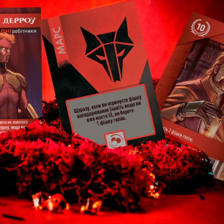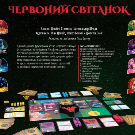 Стратегічна карткова гра за мотивами однойменної антиутопічної серії романів Пірса Брауна про тоталітарний світ майбутнього, поділений на різнокольорові касти. Настільна гра «Red Rising» була розроблена в 2021 році знаменитим Джеймі Стеґмаєром (Гікач локалізував його «Косу»), великим фанатом творчості Пірса Брауна. Як і всі ігри Джеймі, «Red Rising» здійняла гайп у настільному співтоваристві й здобула доволі високі оцінки і гарніі відгуки на сайті «BoardGameGeek».