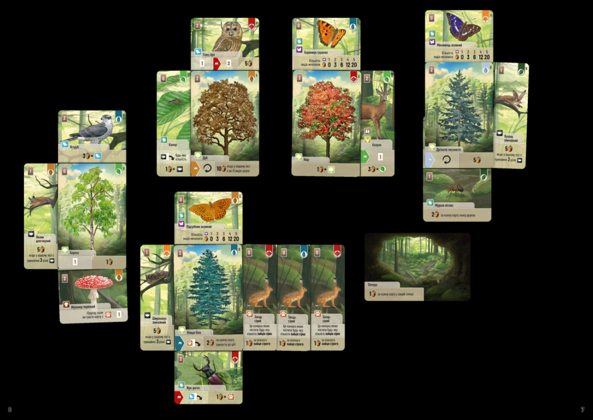 - зіграти карту з руки, сплативши її вартість в картах, та розмістити в своїй ігровій зоні лісу.