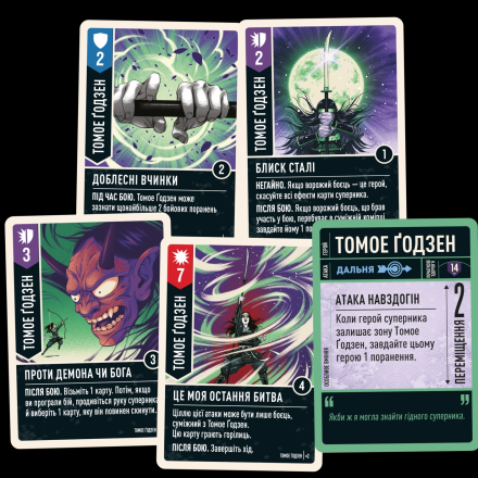 - Маневр. Гравець бере верхню карту з колоди та може перемістити своїх бійців на відстань, що зазначено на його картці героя.