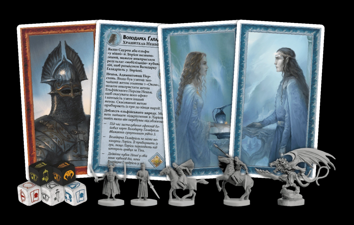 Володар Ельронд, Хранитель Вільї, Володарка Ґаладріель, Хранитель Неньї та Ґандальф Сірий, Хранитель Нар’ї – кожен з них може по-особливому використовувати відповідний Ельфійський Перстень. Щоб гравцям було простіше відрізняти Персні один від одного, це доповнення містить нові жетони Ельфійських Перснів з портретами їхніх Хранителів.