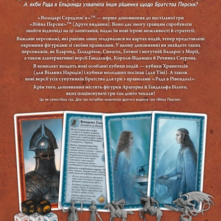У гру додають три світлі кубики Хранителів Ельфійських Перснів (Ельронд (Вілья), Ґаладріель (Ненья), Ґандальф (Нар’я) і два темних кубики молодших посіпак (Бальроґ і Ґотмоґ).