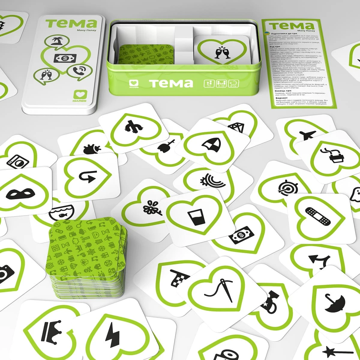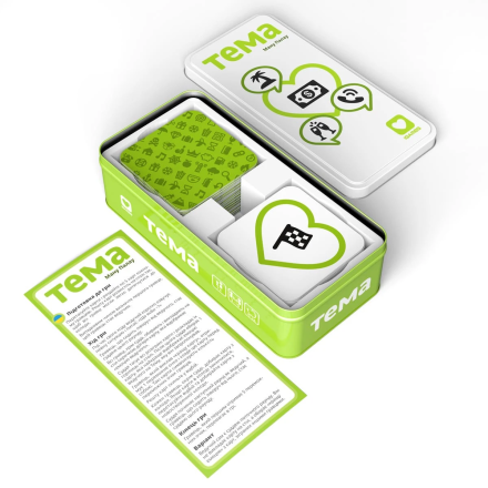 Швидка паті-гра на відгадування емоцій. Настільна гра «Тема» ідеально підійде для дружньої вечірки або сімейних посиденьок. Компактні розміри та кріпка бляшана коробка дозволяють взяти гру в дорогу. Гікач гарантує, що «Тема» сподобається всім учасникам, незалежно від віку чи ігрового досвіду.