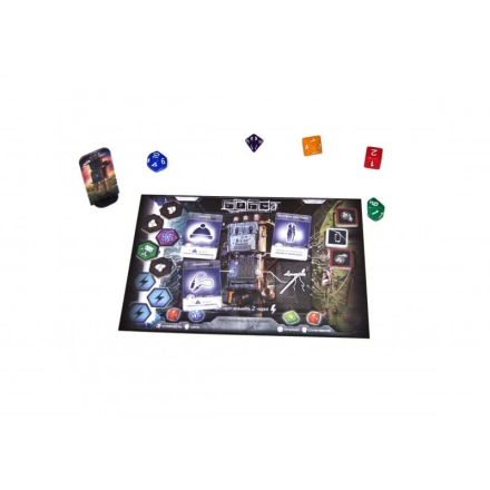 - Табір, Контейнерний парк, Поле, Звалище, Корабель прибульців - треба зіграти верхню карту з колоди локації. На карті вказана ігрова ситуація, вимоги перевірки та нагорода у разі успіху. Перевірка навички - сили, спритності, інтелекту або спілкування - здійснюється кидком гральної кістки відповідного рівня (кольору). Чим вище рівень, тим більше граней, отже, можуть випасти більші значення. Щоб пройти перевірку, треба викинути вказане мінімальне значення. Витративши жетон енергії, можна перекинути кістку. Використані жетони запчастин дають +1 до результату.