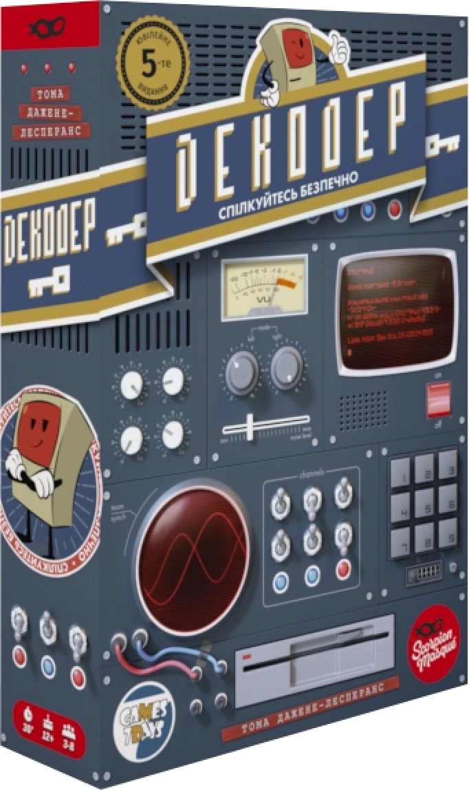 На честь ювілею однієї з кращих ігор про шифрування слів – «Декодер» отримала нове стильне золотаво-тьмяне оформлення. У цій коробочці вас чекає 440 абсолютно нових слів, які можна використовувати як для самостійної гри, так і в поєднанні з першим виданням.