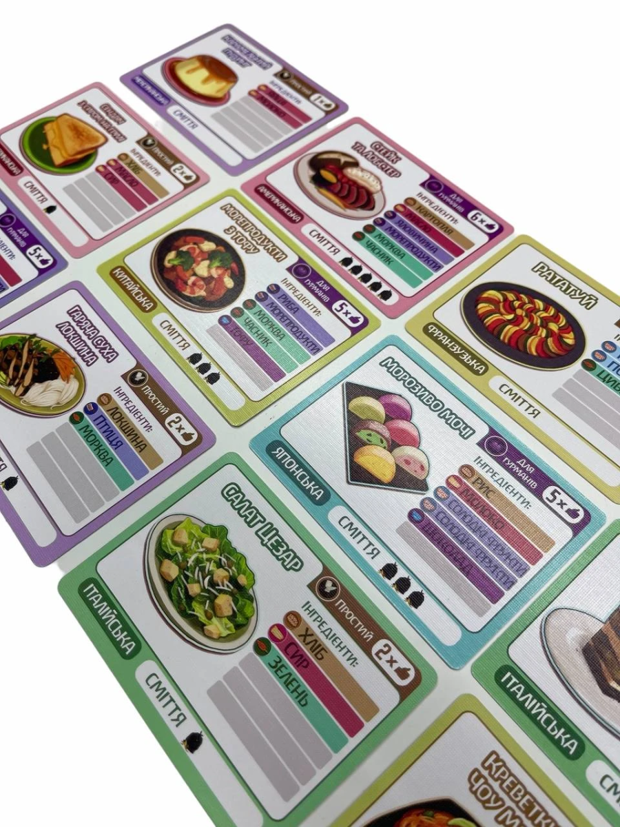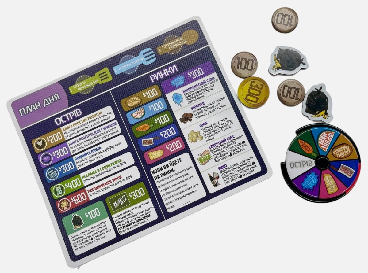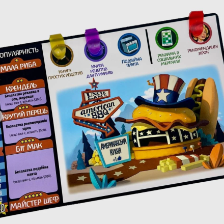 - готуйте рецепти, зарахуйте очки популярності чи штрафи за сміття, отримайте жетони сміття та новий рецепт, після чого оновіть запаси на прилавках ринків.