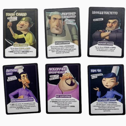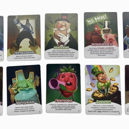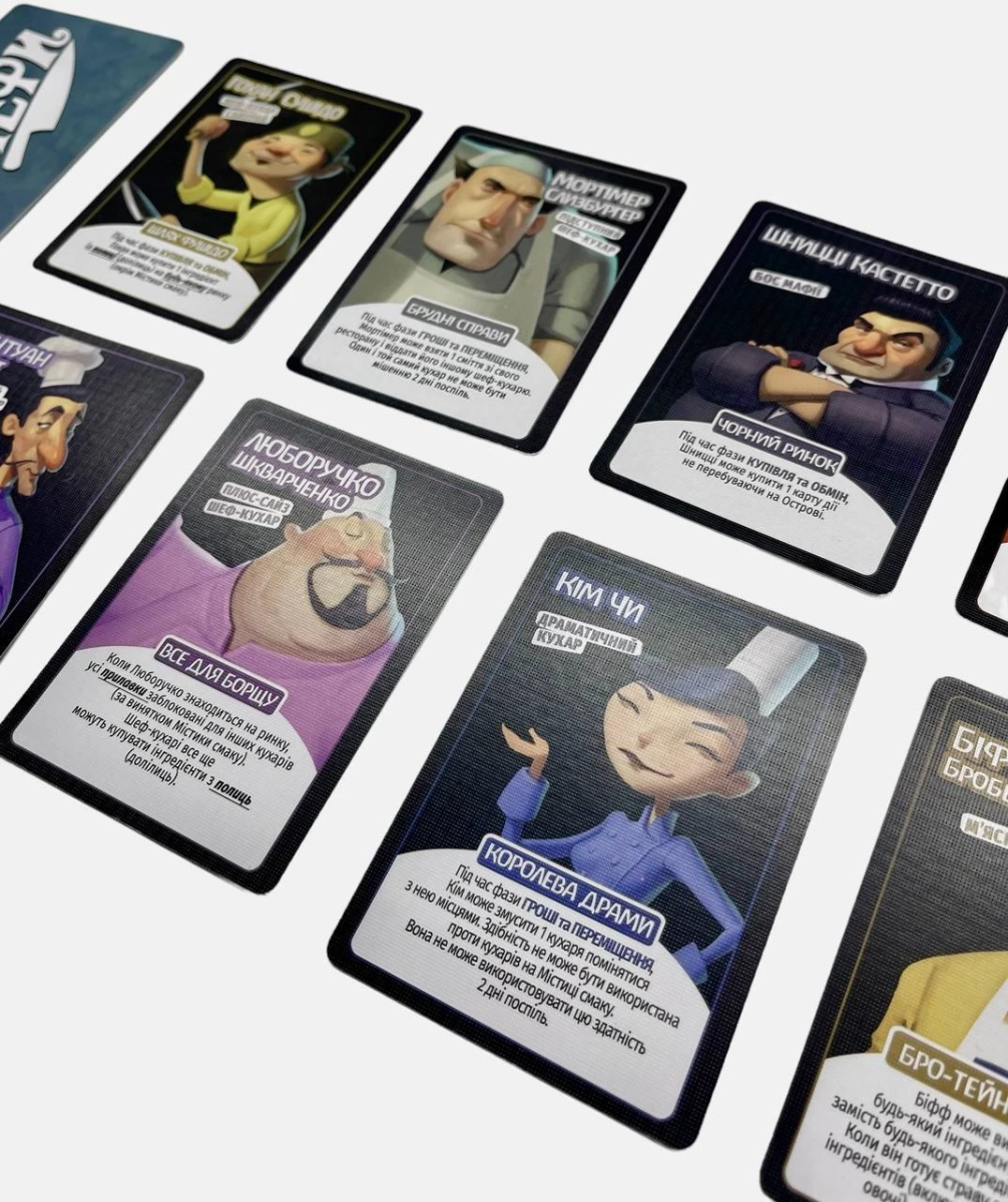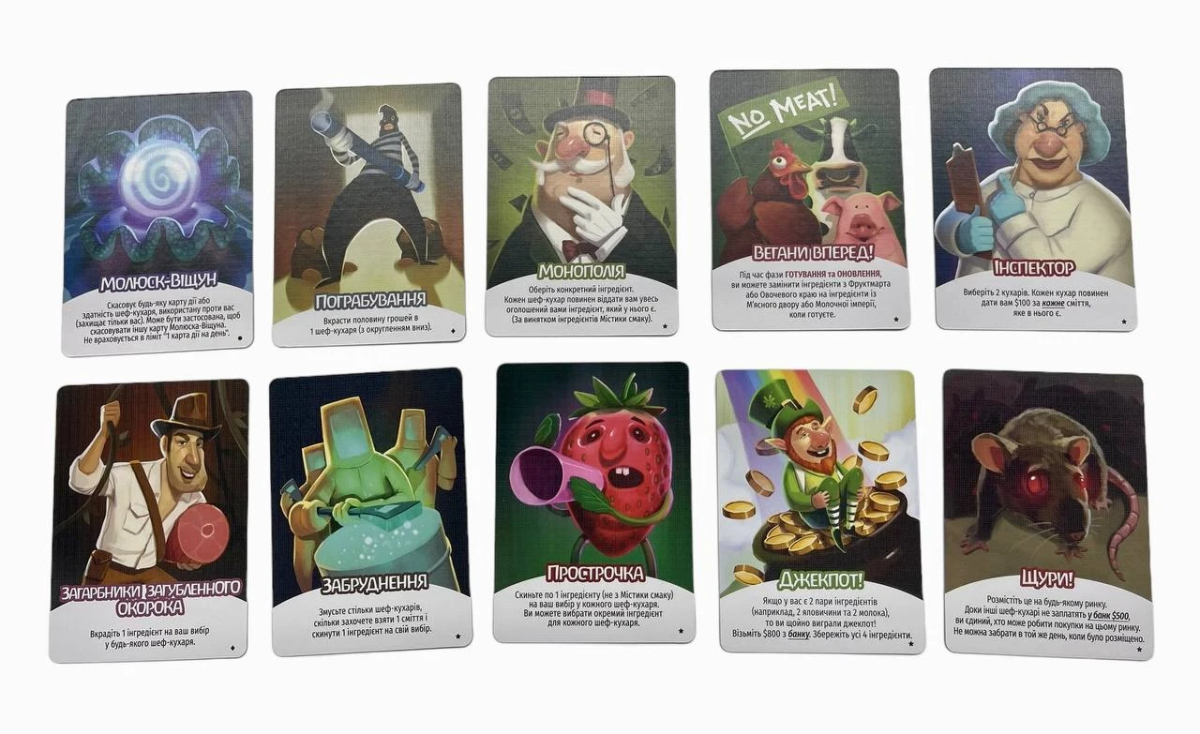 - купуйте карти з прилавків і полиць, а також обмінюйтесь інгредієнтами, рецептами, картами дій, поліпшеннями, послугами чи сміттям з іншими кухарями,