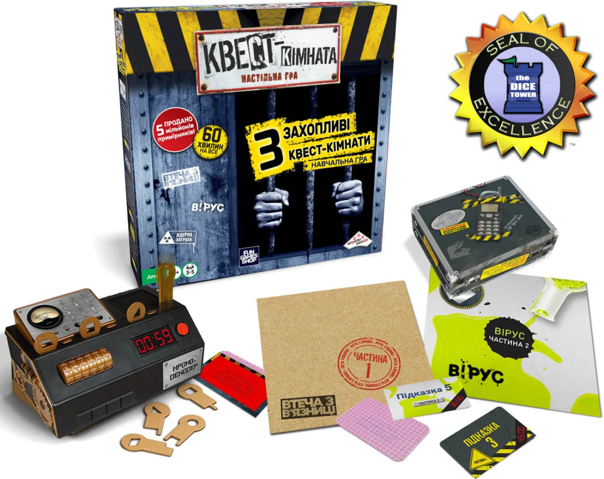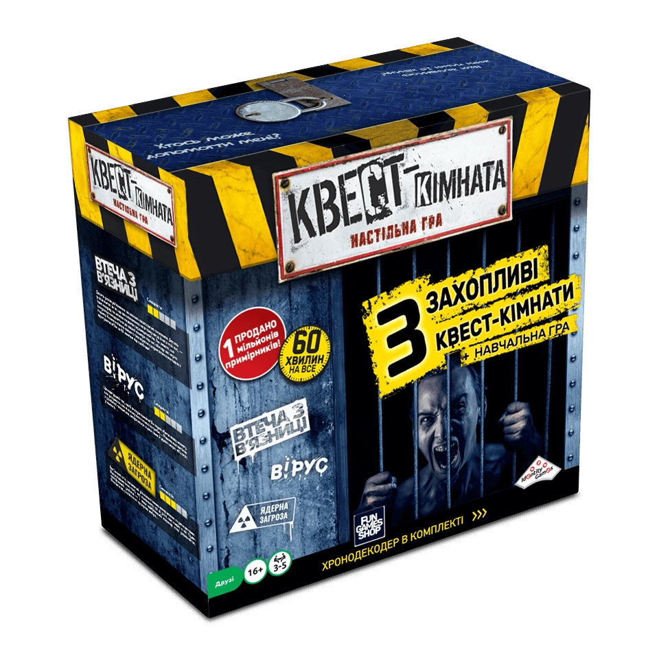 зі Вступного конверту з записками, мапами та різноманітними шифрами. Головною родзинкою гри є хронодекодер на батарейках, який і вестиме відлік дорогоцінного часу, розшифровувати підказки, а також сигналізуватиме звуками про помилку чи успіх. Рухаючись за відгадками, ваша команда підбиратимете правильні ключі до хронодекодера, щоб врешті знайти вірну комбінацію.