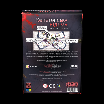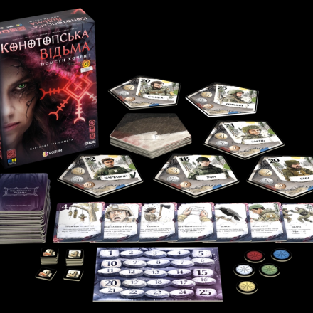 «Конотопська відьма» — швидка карткова гра, у якій гравці звільняють землі від загарбників. Шукайте найкращі комбінації ефектів карт, ретельно плануйте свої ходи й вершіть правосуддя.