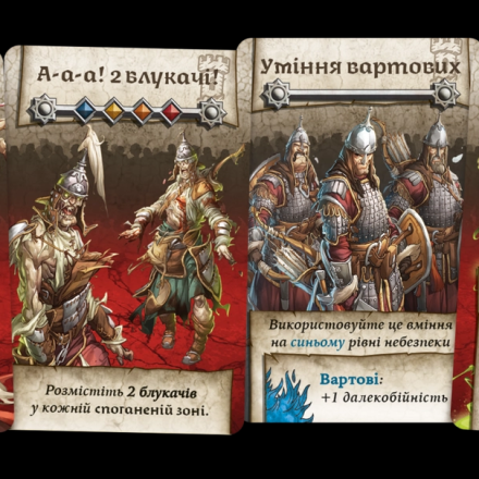 - Вартові. У цій запеклій війні у вас ще залишилися союзники — вірні вартові фортеці. Герої можуть керувати цими персонажами, виконувати дії з їхньою допомогою, і навіть якщо вартовий загине, це не призведе до поразки.