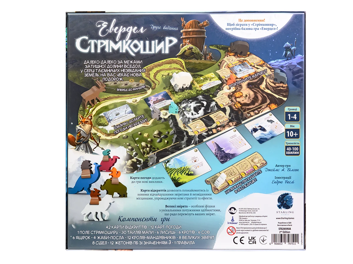 «Евердел. Стрімкошир» — масштабне доповнення до чарівної економічної стратегії «Евердел», яке суттєво розширює базову гру новими механіками та ігровими компонентами. Гострі хребти значно розширюють межі цього казкового світу і додають новий соло-режим, а також новий тип робітників.
