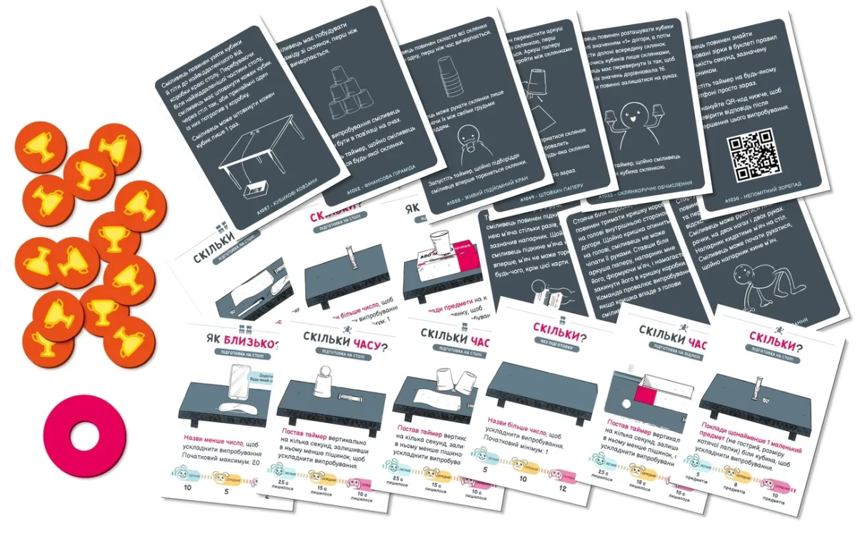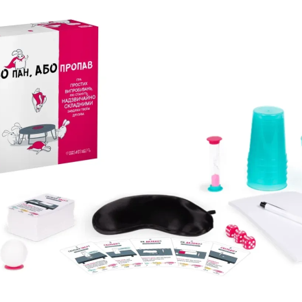 У грі є 150 завдань, для яких використовуються реквізити, як-от пов'язка на очі, чашки та м'ячики, кубики, ручки та інше — усе це входить до комплекту.