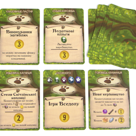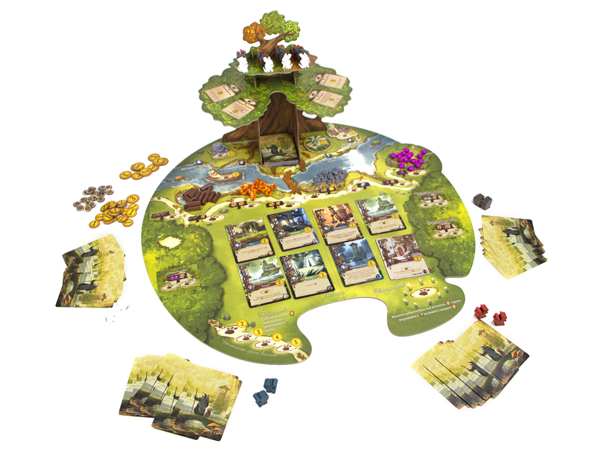 Неймовірно красиве євро про будівництво звірячої цивілізації під покровом Могутнього Вседрева. Це захоплива динамічна гра на будування карткового рушія та розміщення робітників зі зворушливими ілюстраціями та чудовими компонентами – звірятами-міплами, реалістичними ресурсами та величезним тривимірним деревом.