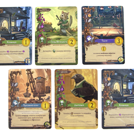 - Розігрування карт. Щоб розіграти карту, гравець повинен витратити зазначені на ній ресурси. Карти бувають спорудами та звірятами. Карту звіряти можна розіграти безкоштовно, якщо раніше розіграли карту необхідної споруди. Розіграні карти викладають до ігрової зони, званої містечком. У містечку може перебувати до п'ятнадцяти карт.