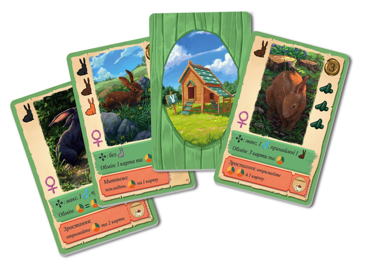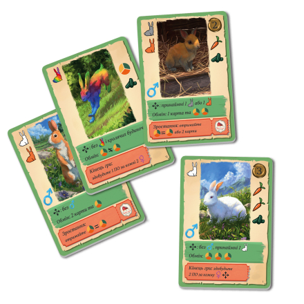 Сімейна настільна гра Кролики (Coney) — це абстрактна стратегія з механіками драфту та збору сетів для 1-4 гравців. У ролі власника кролячої ферми, ви купуєте нових вухастих та створювати комфортні умови для їхнього співіснування, намагаючись здобути якомога більше переможних балів за розумне розпорядження ресурсами та вдалі комбінації ефектів карток.