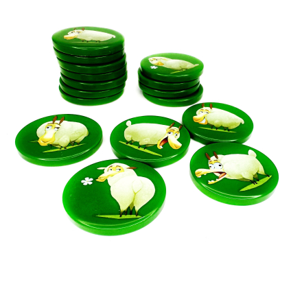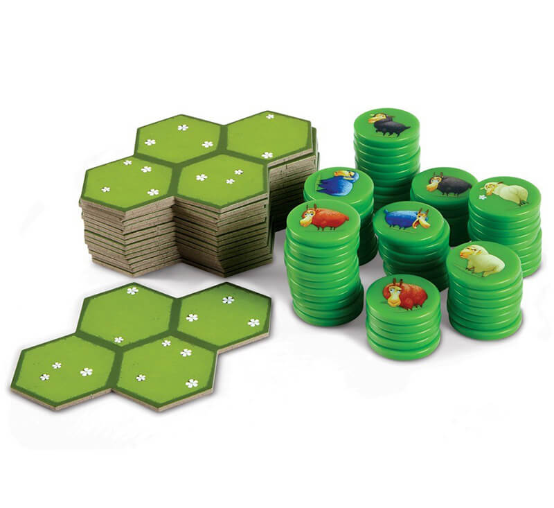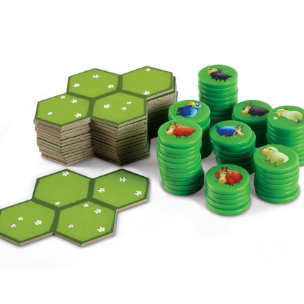 Кожен гравець отримує 16 жетонів овець свого кольору та 4 елементи пасовища, розділених на шестикутні зони.
