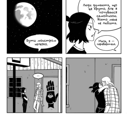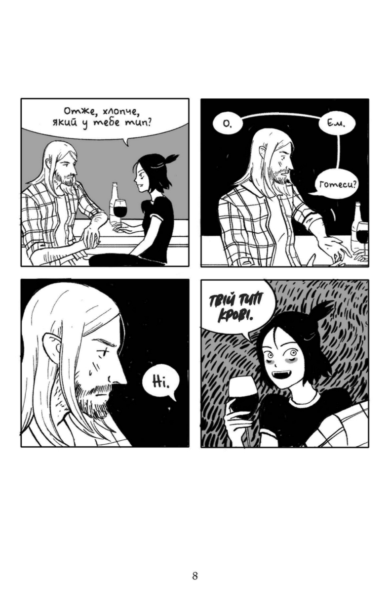«Ікла» не перевантажені заплутаним сюжетом та деталізованими малюнками. Це легка історія, читаючи яку ви знайдете багато відповідностей зі своїм життям. Жінка та чоловік, не приховуючи нічого про себе, стають дуже близькими, не зважаючи на свої дивакуваті манери.
