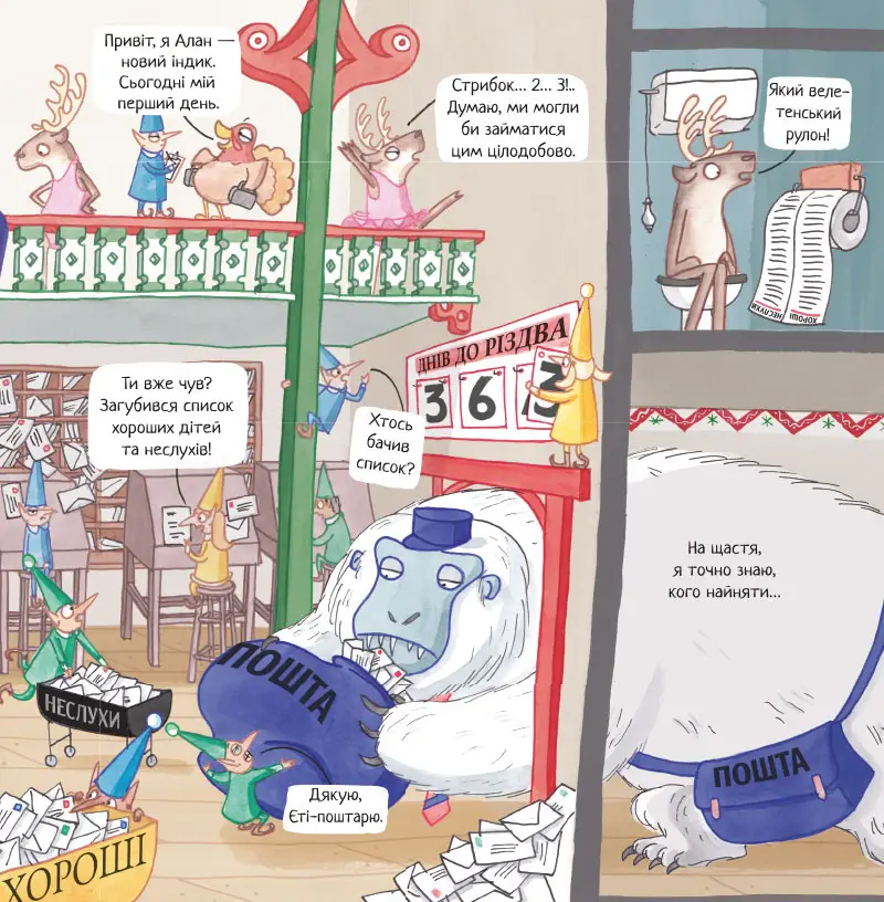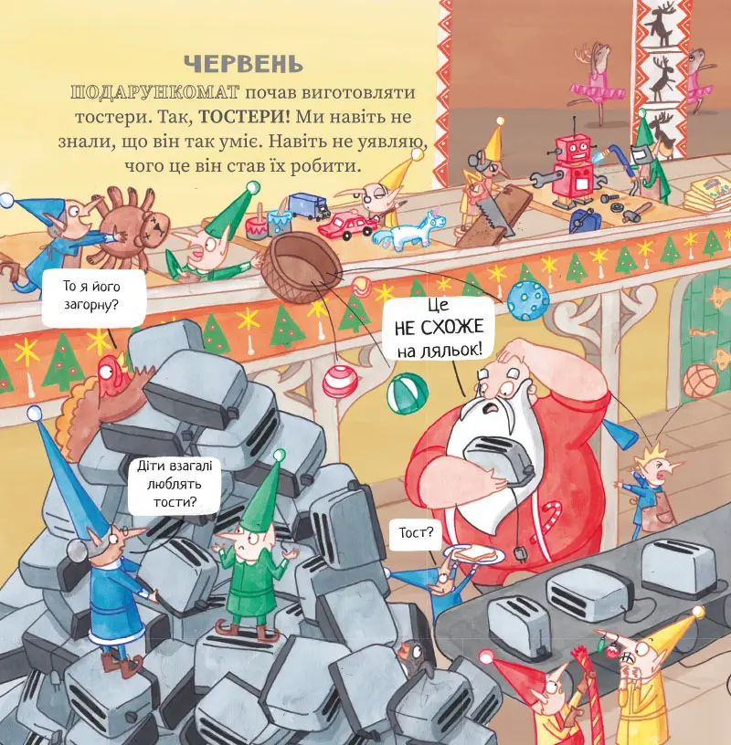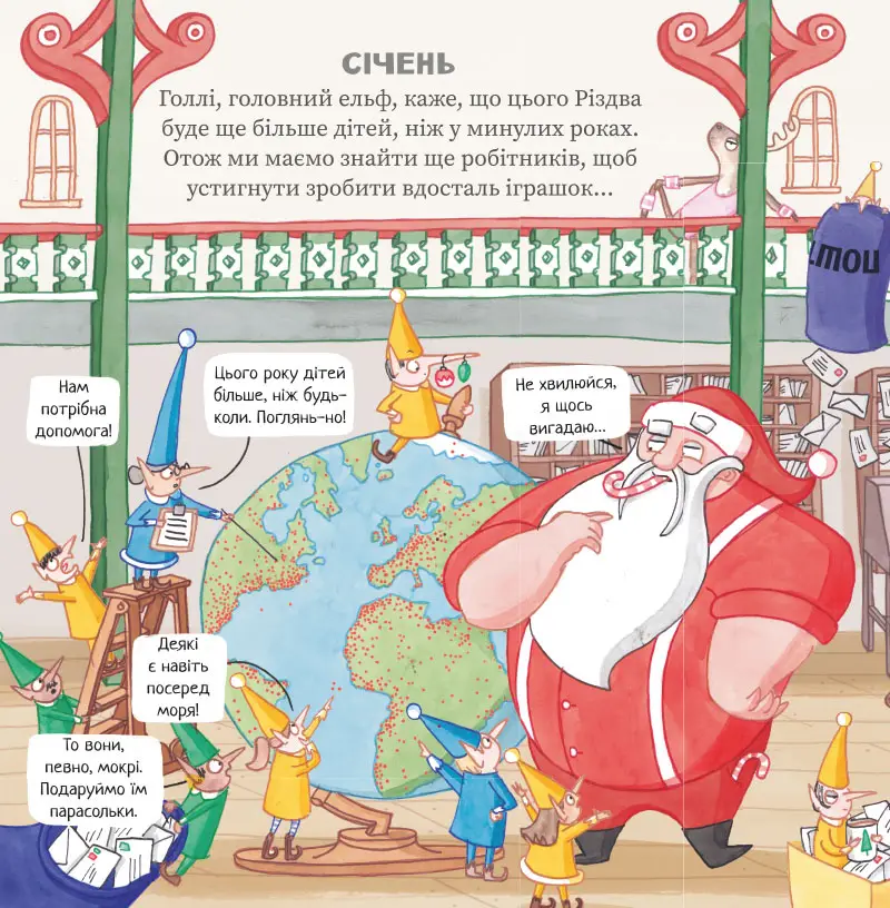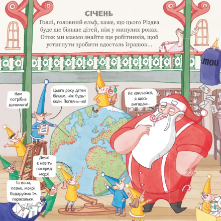 Будьте готові, що «Чарівна майстерня Санти» — це ну дуже весела історія, де у коміксовому вигляді зображений кожний місяць підготовки Санти до Різдва. З нею гарантовано вдасться підняти настрій та пореготати від щирого серця!