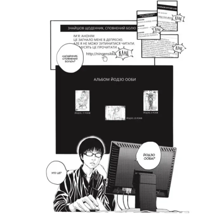 Йодзо Ооба народився в заможній родині й виріс красивим хлопчиком, якого всі люблять. Однак під маскою блазня він ховає страх перед людьми та порожнечу, притаманні особі, яка не має жодної мети й цілком віддалася життєвому плину. Погляньмо ж на його буття.