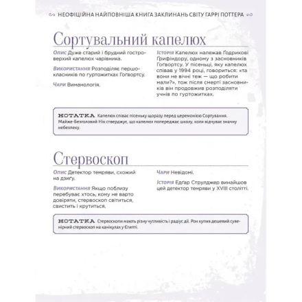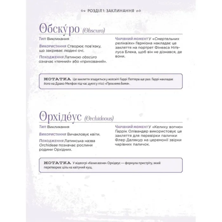«Неофіційна найповніша Книга заклинань світу Гаррі Поттера» пропонує глибокий аналіз понад 240 заклинань — вона містить усі магічні формули, згадані у книжках, фільмах та відеоіграх, і не лише їх! З кожного допису ви дізнаєтеся про походження формули заклинання, а також знайдете пам’ятний момент, у якому воно використовувалося. А ще додаткові нотатки й рухи паличкою, необхідні для всіх потенційних чаклунів та відьом.