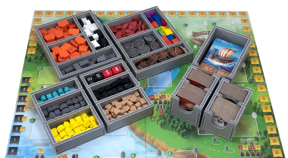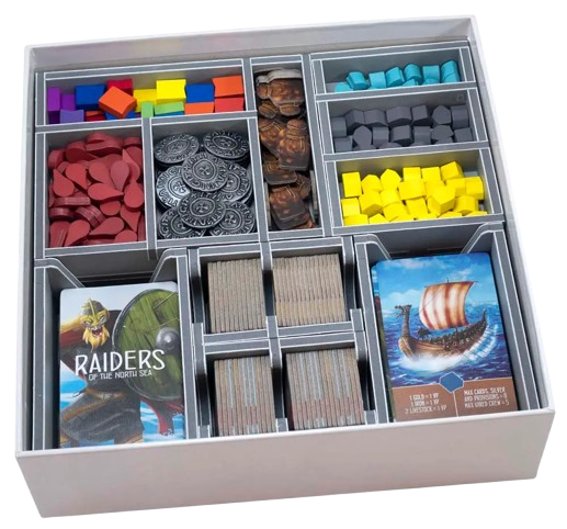 Органайзер для игры Raiders of the North Sea позволит хранить все компоненты в полном порядке и избавит от ненужной траты времени по разбору и сортировке игровых элементов.